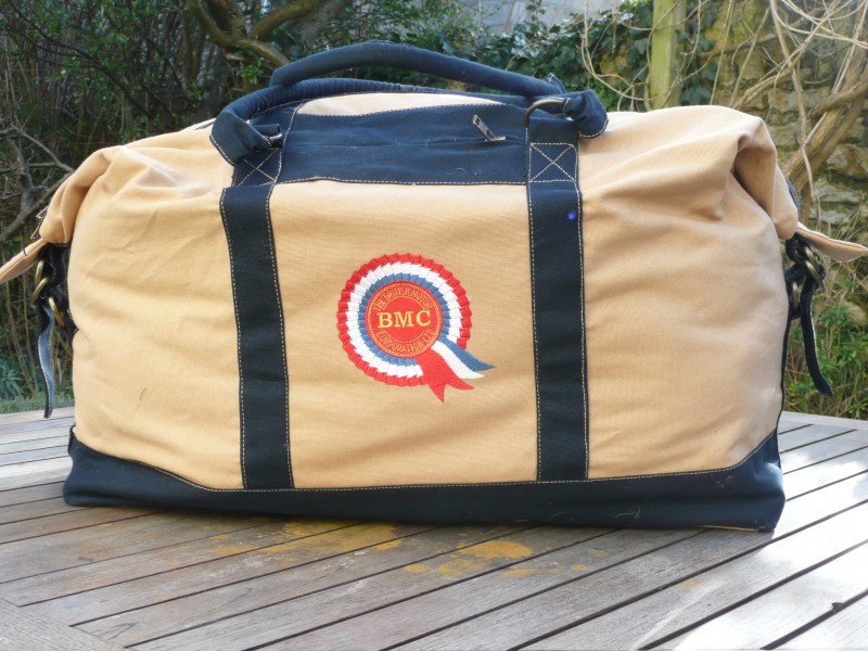 Commemorating the glory days of the 60's & 70's this weekend bag with the BMC Rosette is a reminder of the days when Austins, Morrises & Rileys were a tour de force on British roads.
