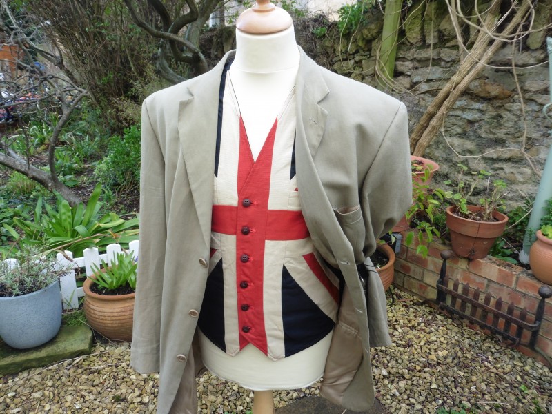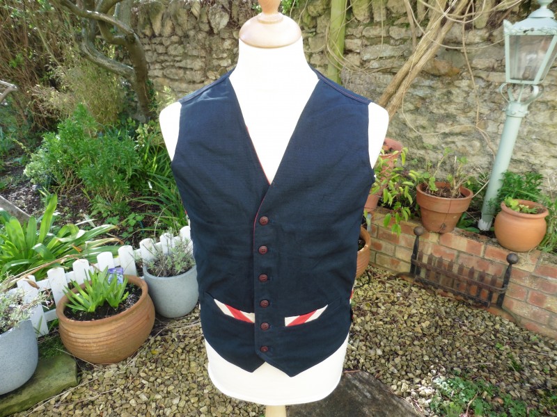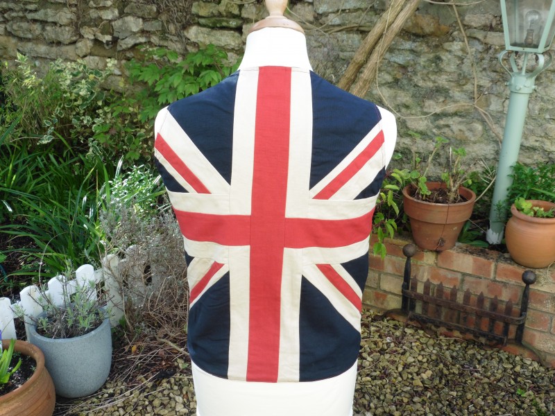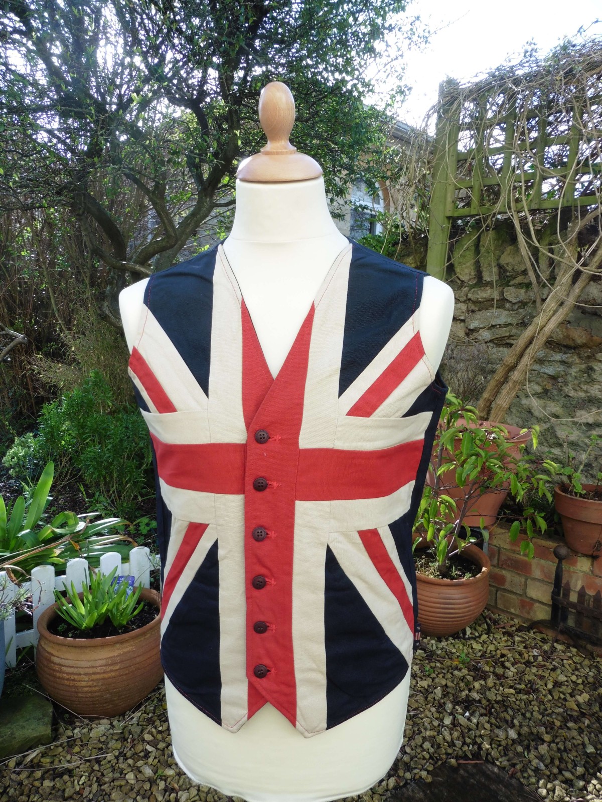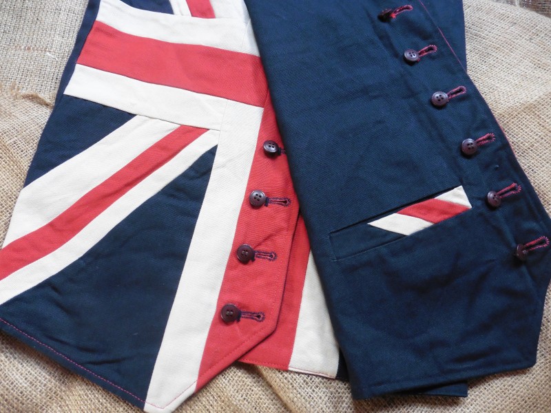 When 'flying the flag' the front of the waistcoat is fully Union Jack, whilst the back is navy. When reversed the front becomes navy, with discreet red, white & blue flashes on the pocket binding, whilst the back becomes a complete Union Jack, which can be hidden when wearing a jacket.