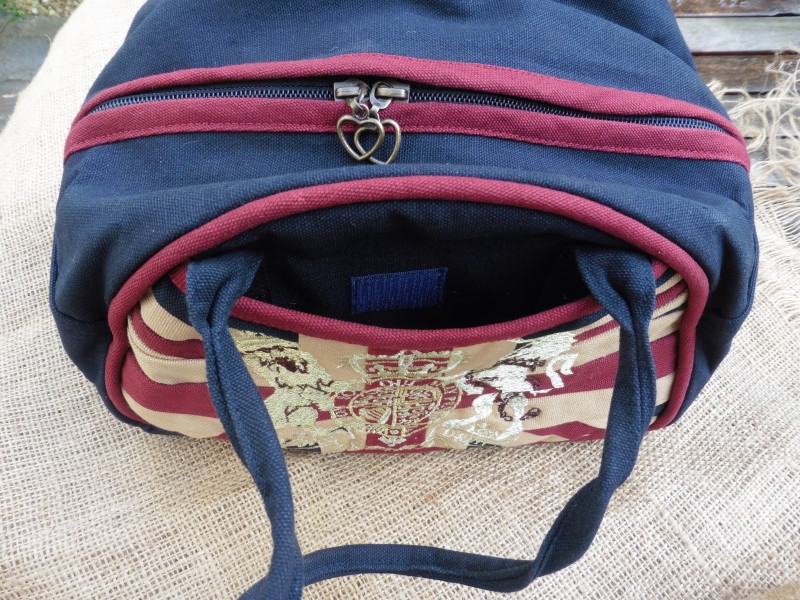 This is a fabulous Union Jack handbag with a gold thread royal crest design on both sides. This vintage cotton duck handbag is inspired by 1960's chic.
