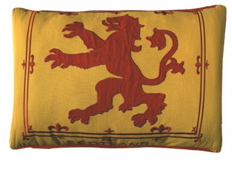 Scottish cushion featuring the Lion Rampant in red embroidery. The Lion Rampant or the Royal Standard of Scotland (or Coat of Arms)was a flag that was used when the monarch was around. At one time it was an offence for this flag to be flown anywhere, other than for royalty.