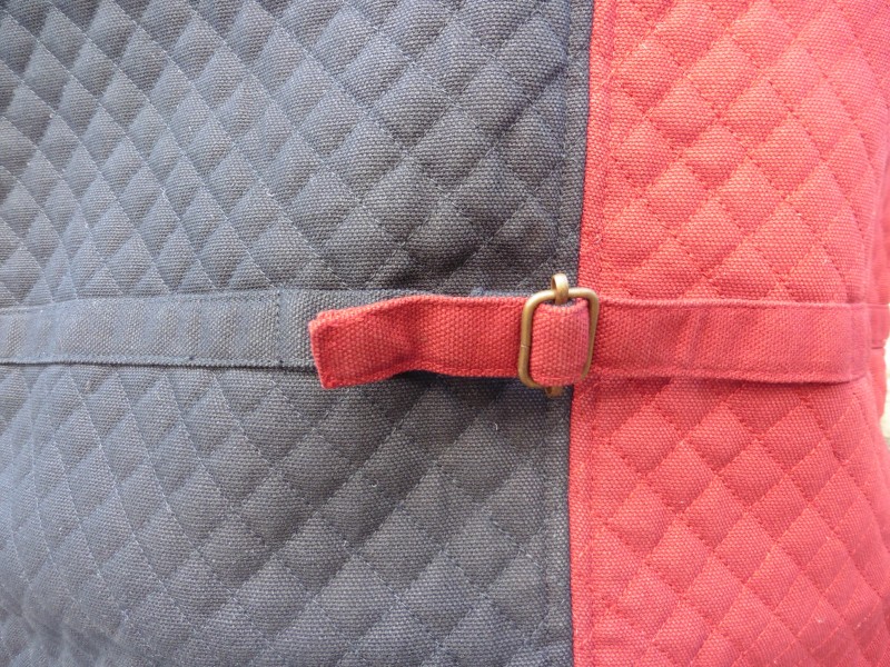 The back of the waistcoat is in a red tartan, to match the lining, with an adjustor strap.