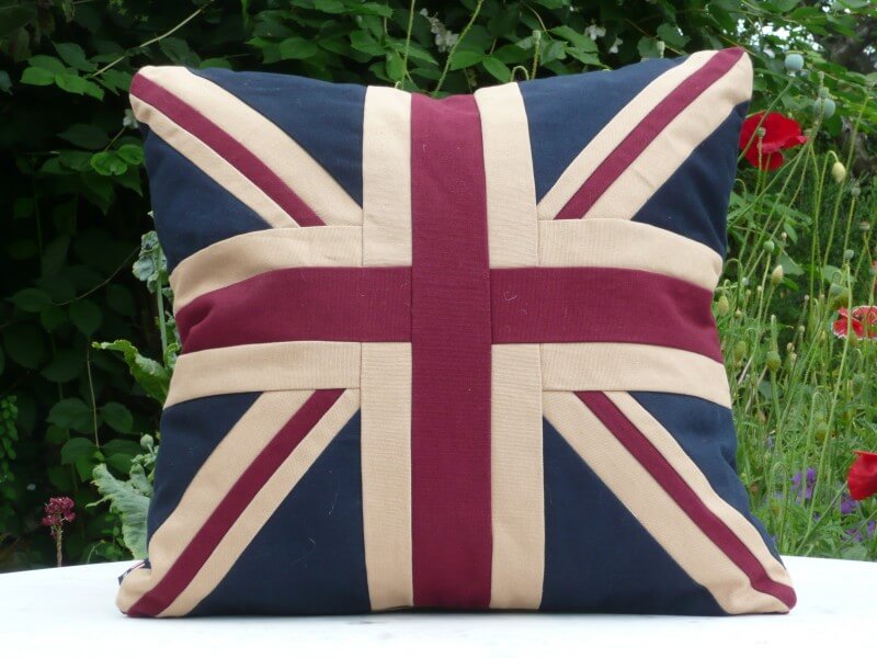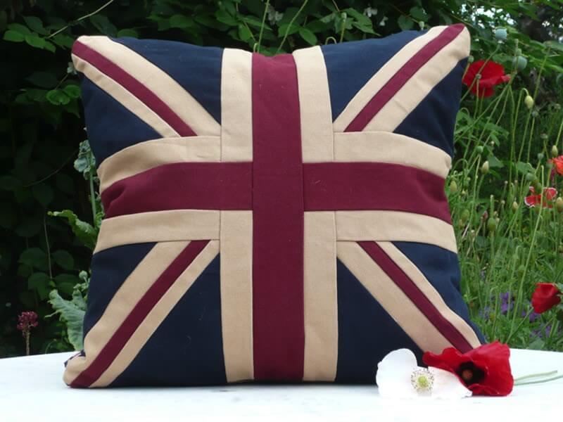 A traditional union jack designed cushion with an identical design on each side. The union jack design is made up of individual seamed pieces rather than simply a print. This cushion is available in a range of different sizes and is supplied with a polyester filling.