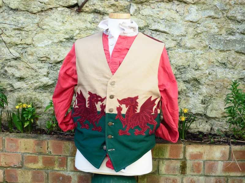 Give your Welsh team a boost by showing your loyalty and support by wearing this fabulous Welsh Dragon Waistcoat. Made in 100% cotton, and available in chest sizes 42 " - 51", this waistcoat features two bold red dragons at the front which is fastened by antique, metal style buttons. There are two subtle side pockets; the back of the waistcoat is lightly quilted in plain maroon with an adjustor strap. Experience tells us that you should choose a waistcoat that is 2" bigger than your measured chest size. This will give you room to breathe!