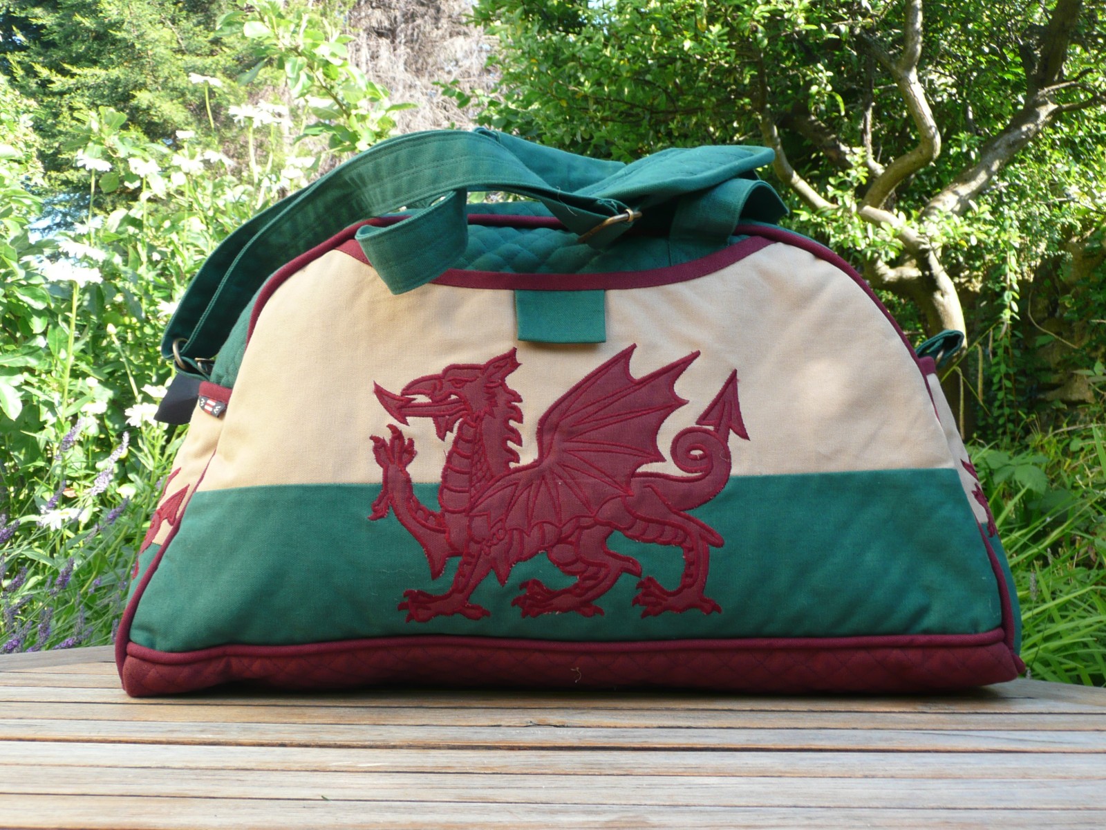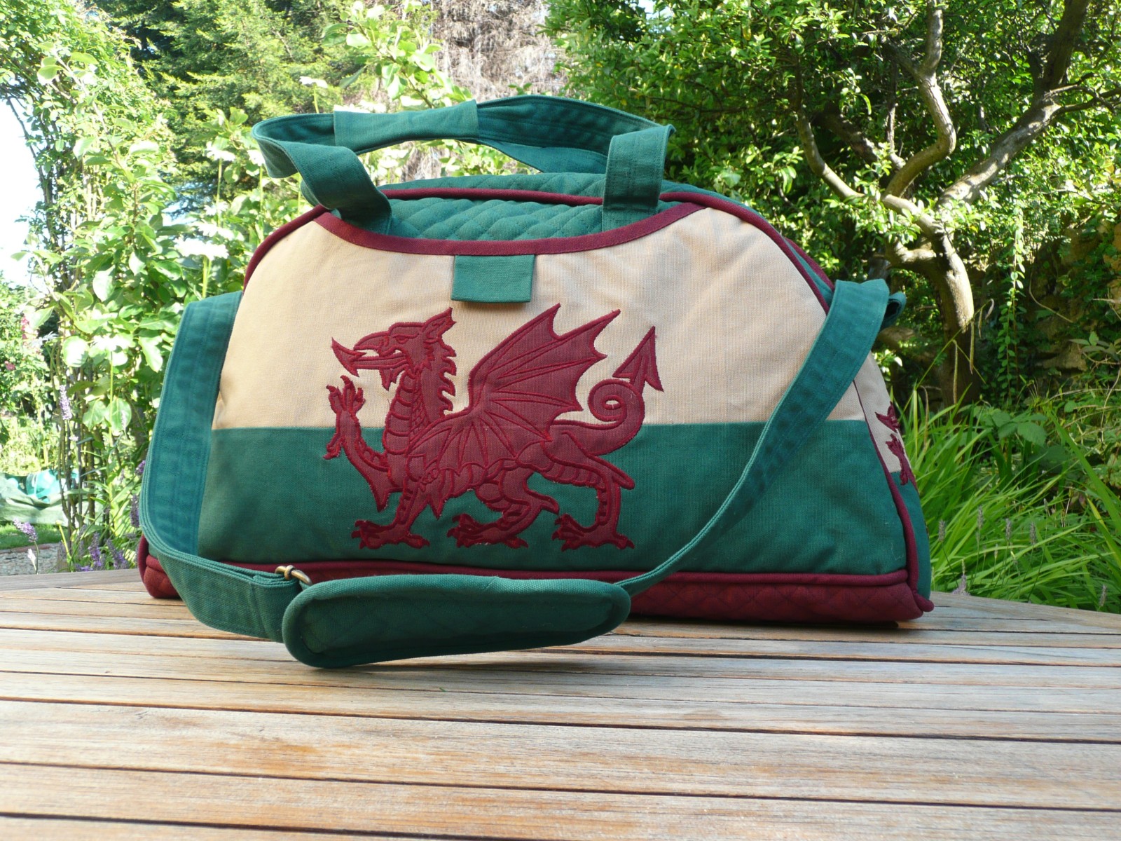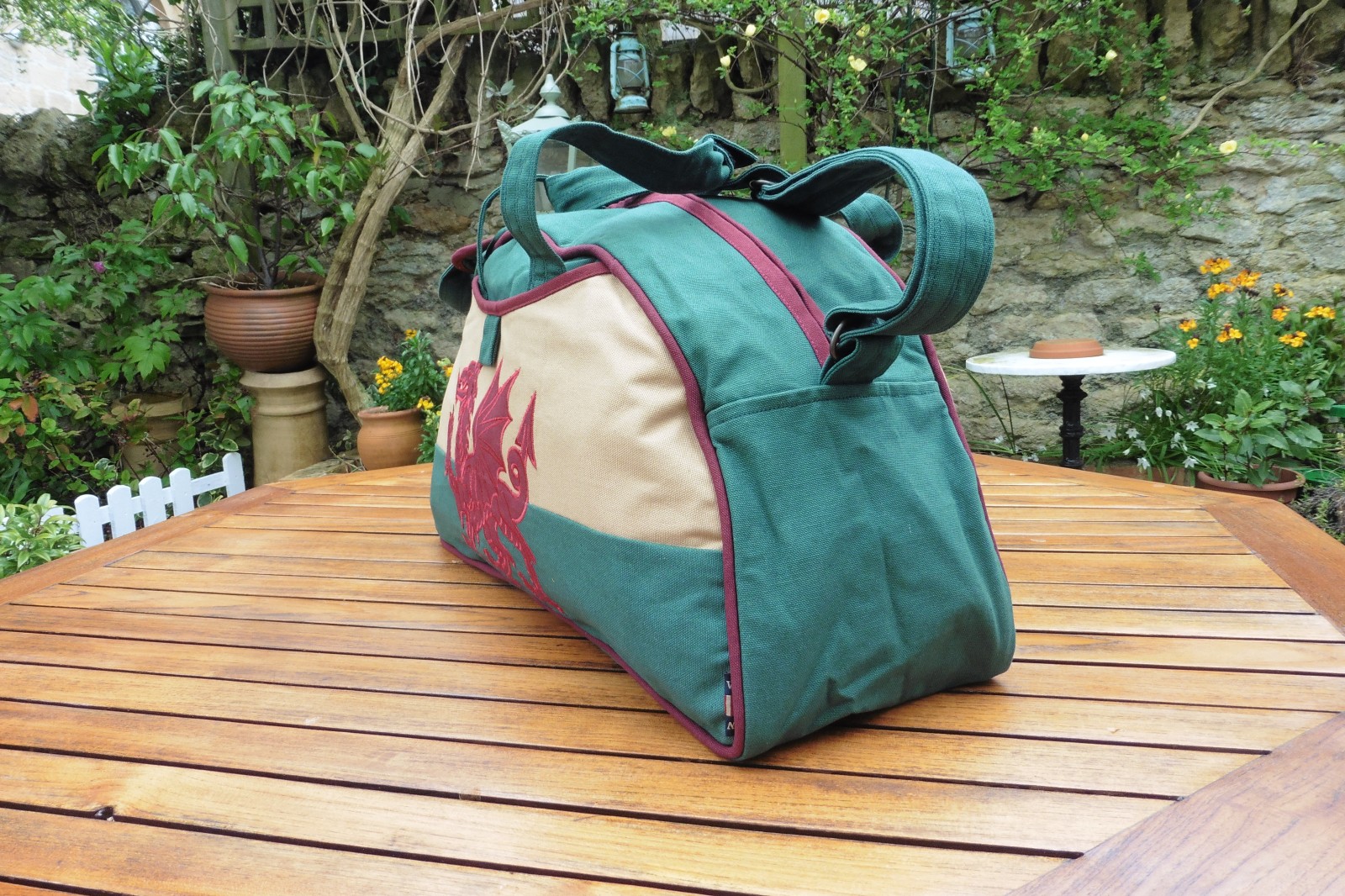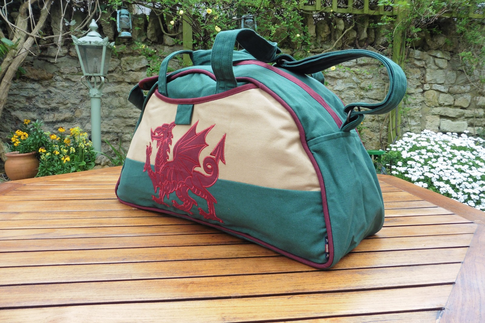 Robust Overnight bag featuring the Welsh Dragon in tea dyed cotton.